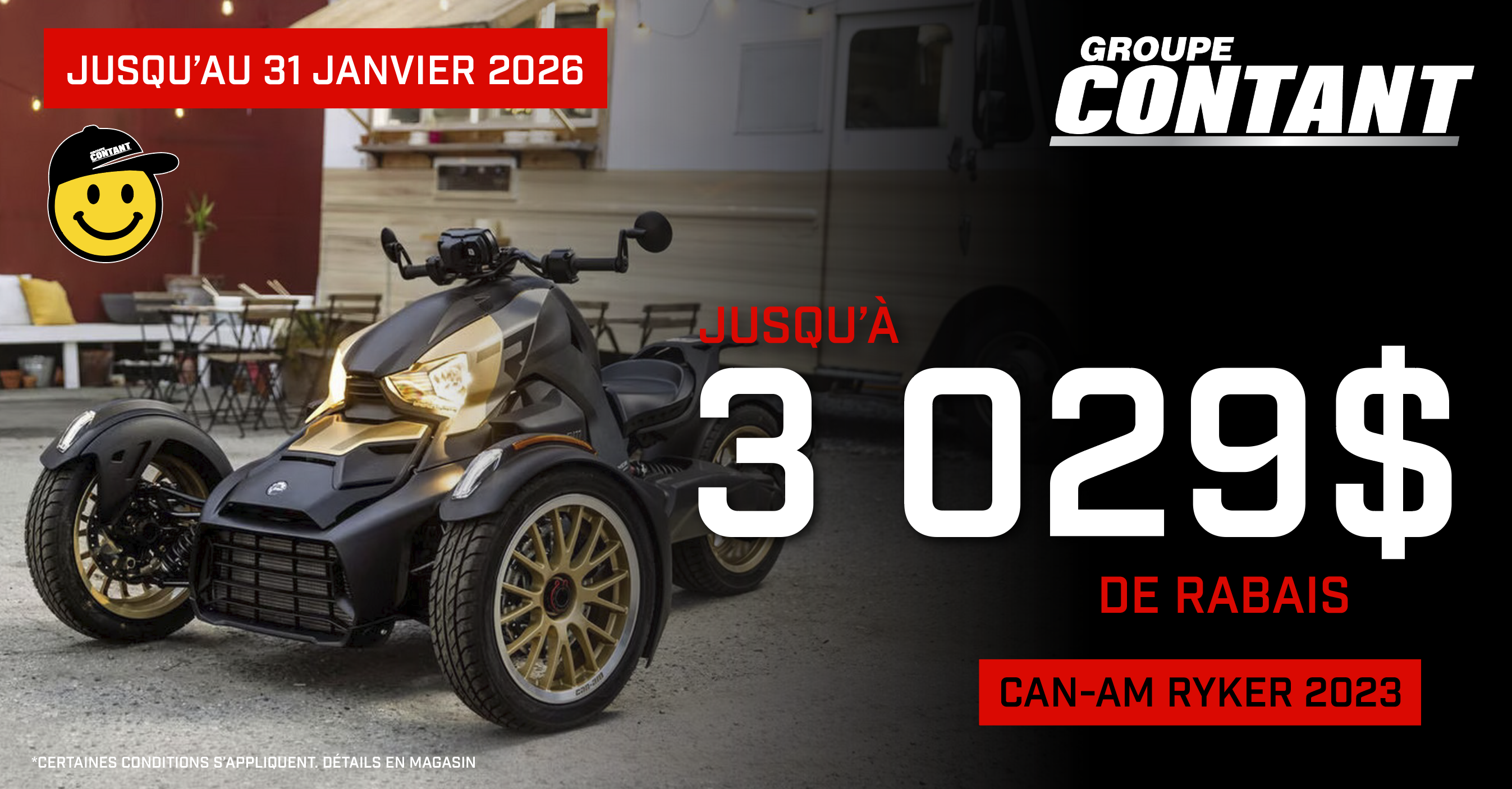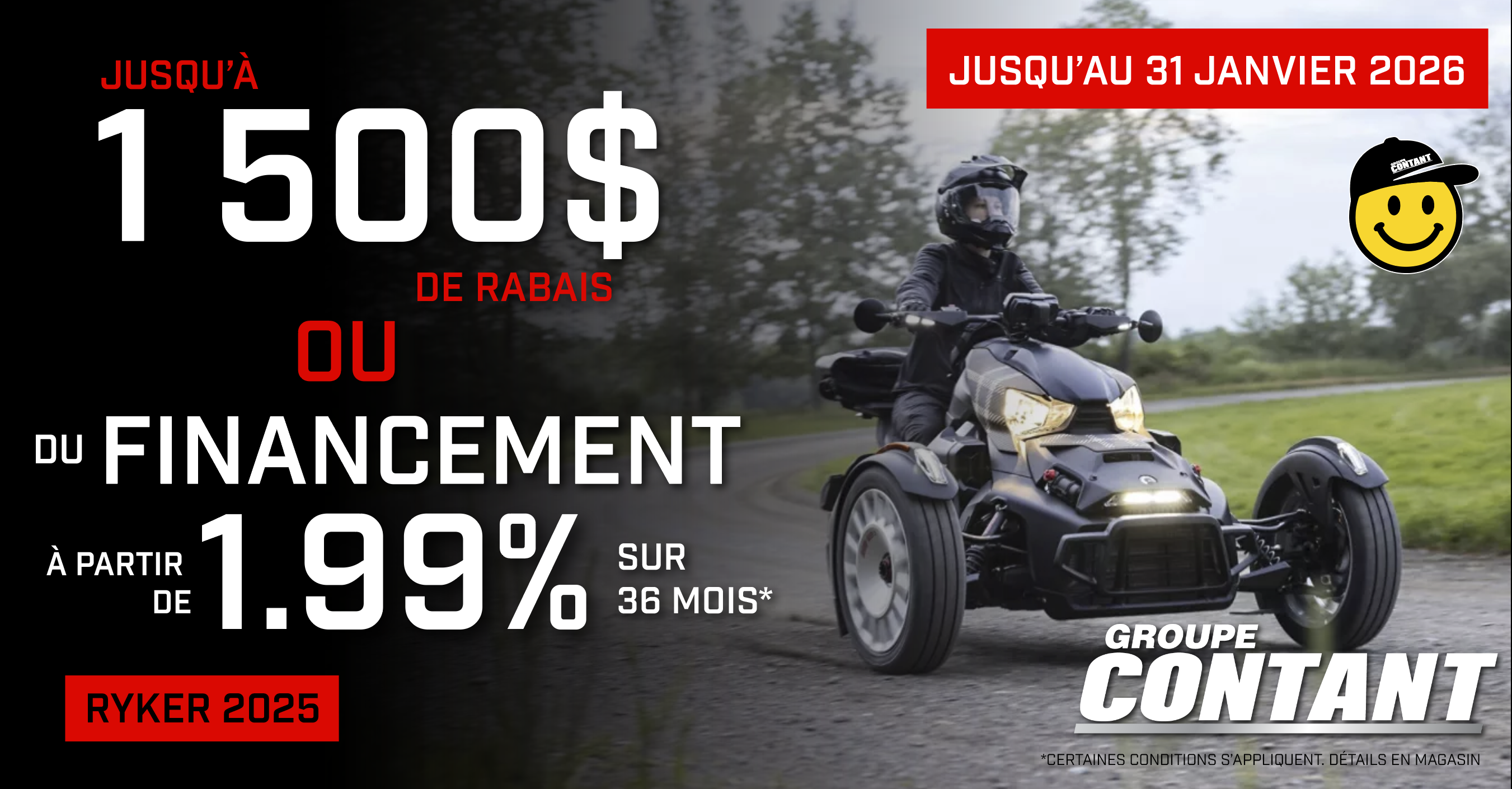 La maîtrise de votre Ryker vous est accessible grâce à toutes les possibilités qui vous sont offertes. Avec ses innombrables accessoires que vous pouvez additionner, vous aurez le véhicule Ryker de vos rêves. Plus de 75 000 combinaisons sont possibles, laissez votre créativité prendre le dessus! Offert en version Ryker Rallye, ou le Ryker 600 et 900 vous pourrez trouvez le modèle parfait pour combler tous vos besoins. Venez voir notre large inventaire de véhicules récréatifs dans l’une de nos succursales Contant.